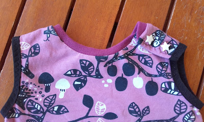 Tiene el bajo ligeramente asimétrico y la pieza del lateral lleva un bolsillo con la tela estampada, me gusta mucho como ha quedado, pero la próxima (que la habrá) la haré con la pieza del bolsillo algo más adelante, para que se vea más de frente.