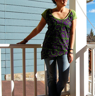 El patrón que he utilizado es el de el vestido Luar, con algunas modificaciones. He acortado bastante en las mangas, dándoles una forma algo curva, y he bajado el escote 7 cm aproximadamente. También he acortado el cuerpo y he hecho menos pronunciada la asimetría del lado más largo.